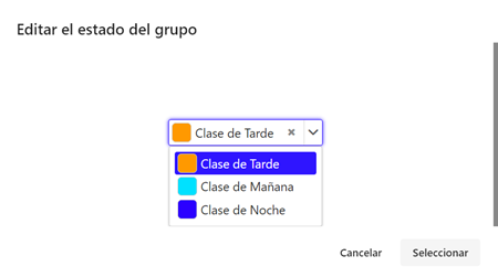 A continuación, se abrirá la siguiente ventana para seleccionar el estado del grupo y haremos clic encima del botón Seleccionar para guardar la acción.