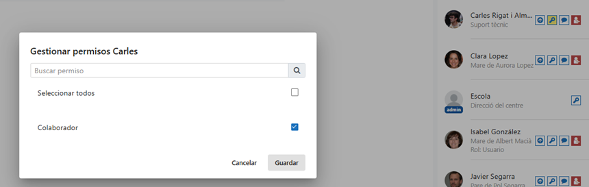 Dentro de un grupo se pueden definir permisos para sus usuarios. De esta manera, se desbloquea el acceso a funcionalidades de gestión avanzadas.